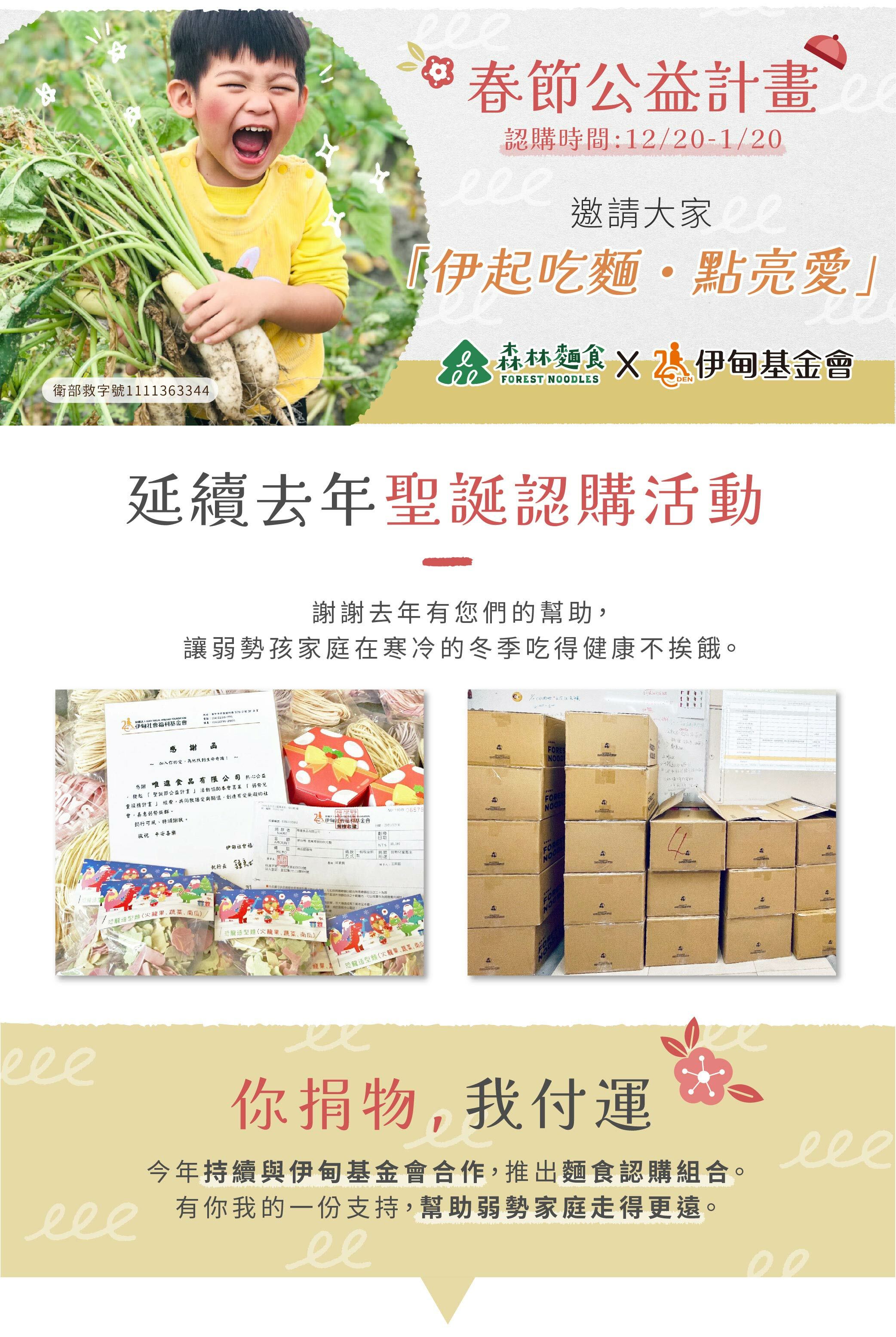 2.本次捐物活動將由受贈單會(伊甸基金會)統一開立捐物收據給森林麵食(唯進食品有限公司)。