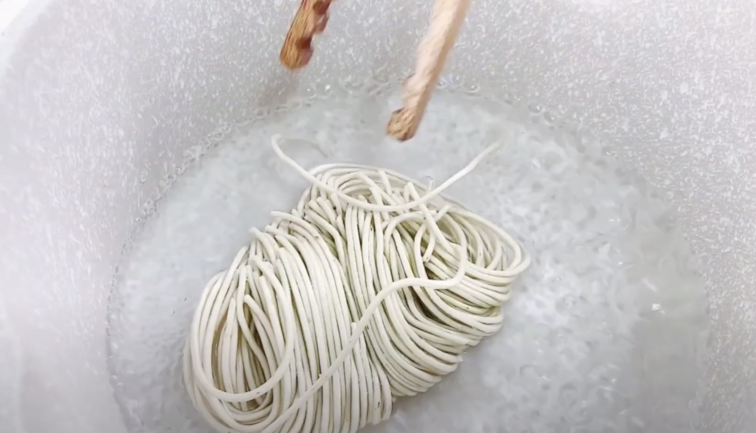 2. 放入麵體時,使用夾子或筷子將麵夾散,以免麵條互相黏住