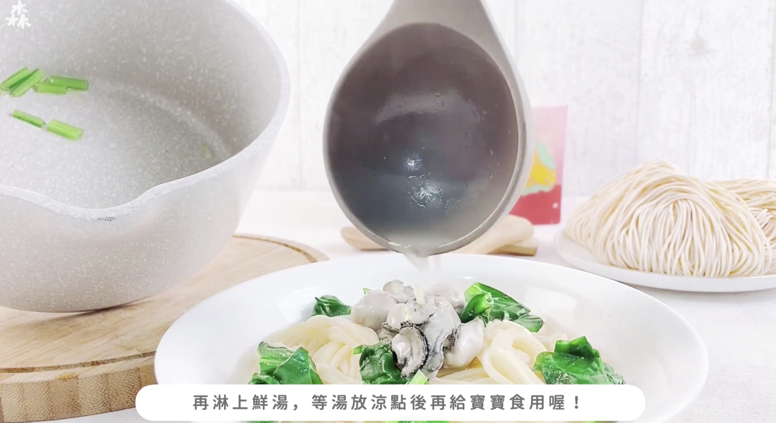 1. 水滾後,放下寶寶麵煮約3-4分鐘,