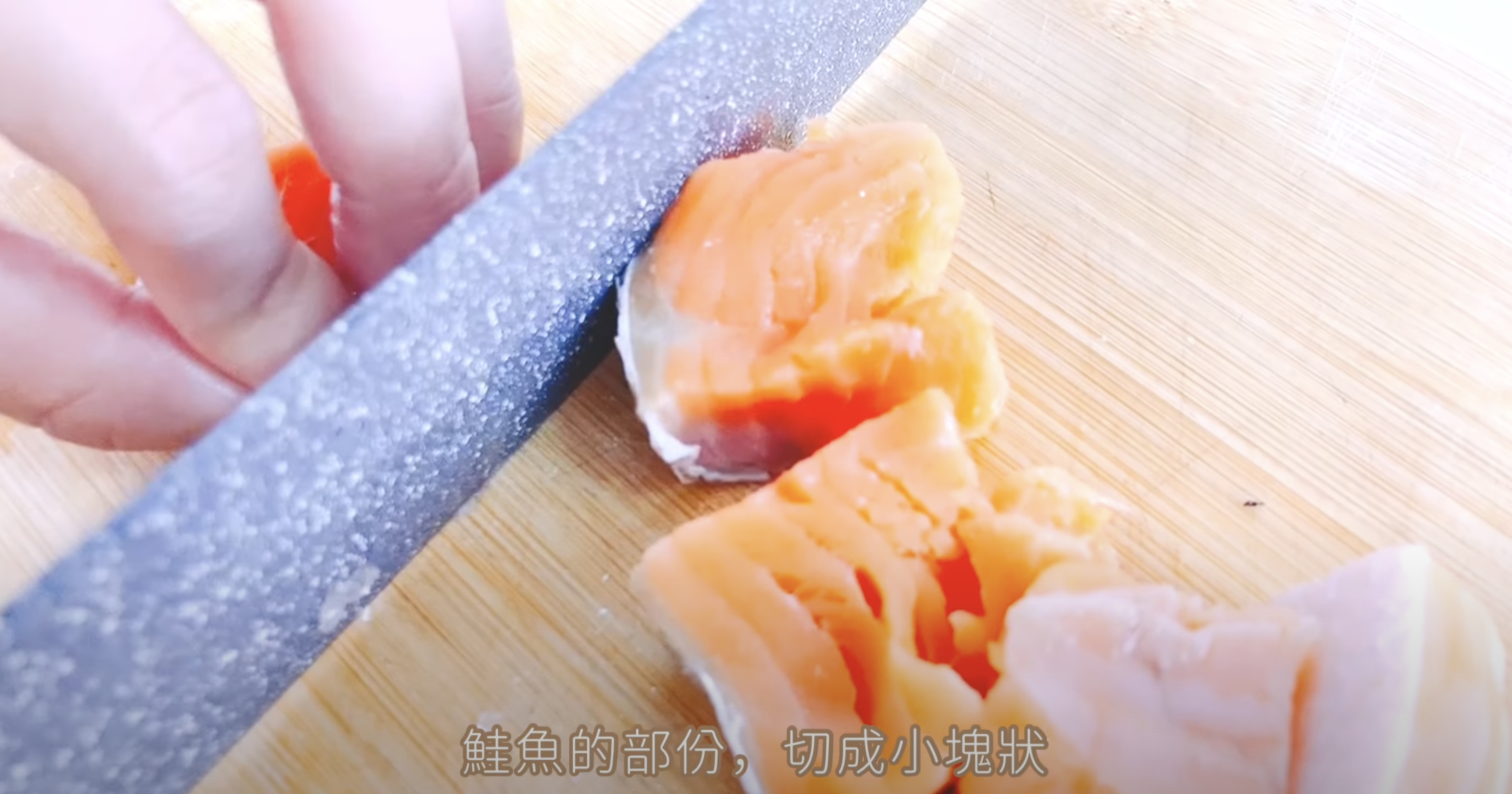 第二步 : 鮭魚切塊+去刺/