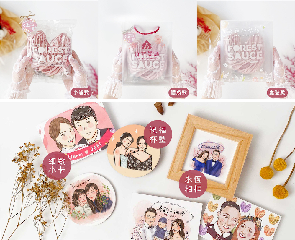 為了符合各種需求,愛心囍麵分為小資款、禮袋款及盒裝款