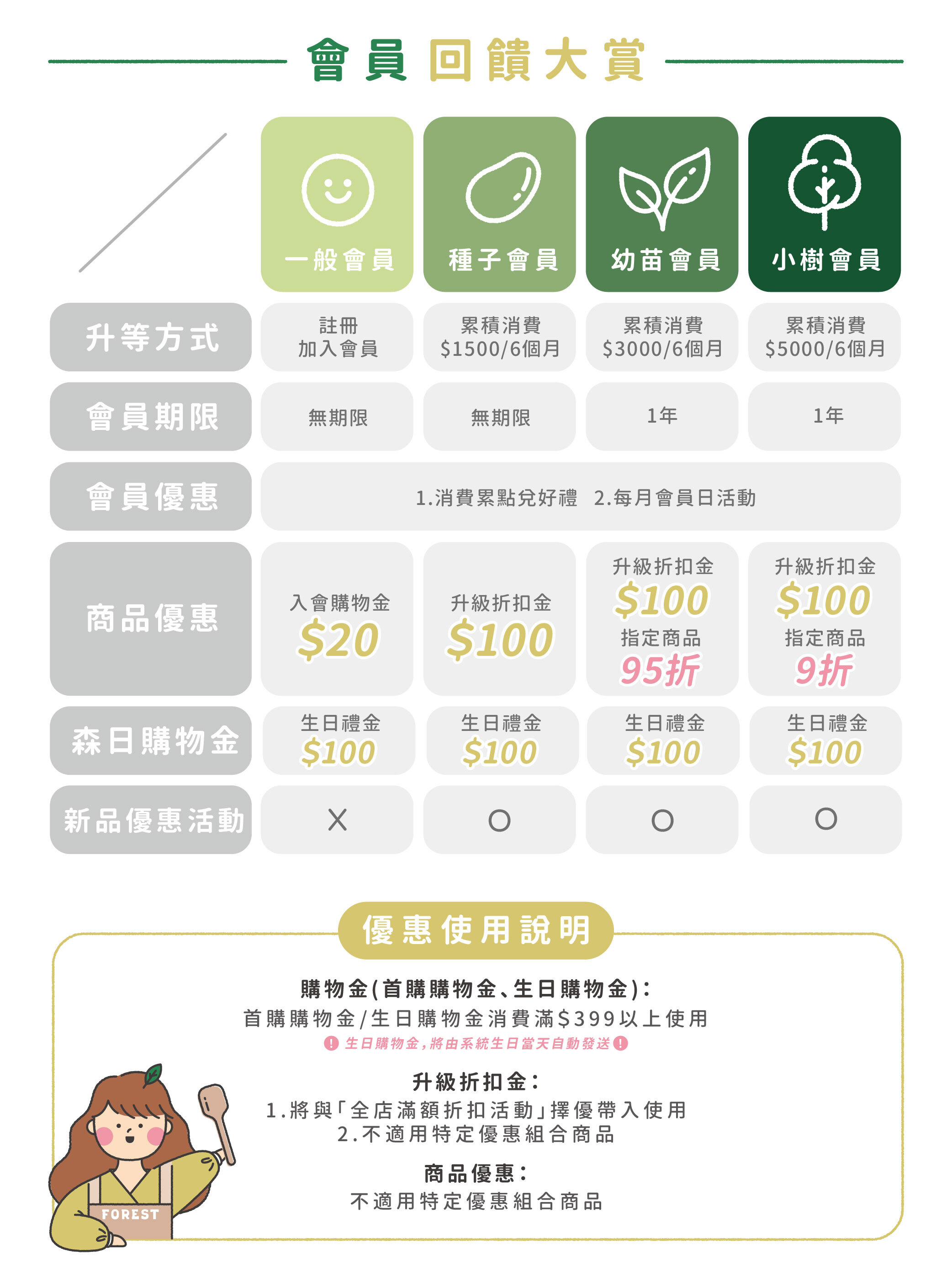 1.其他活動與更動事項依官網、粉專公告為主,森林麵食保留會員制度變更、修改或終止辦法之權利。