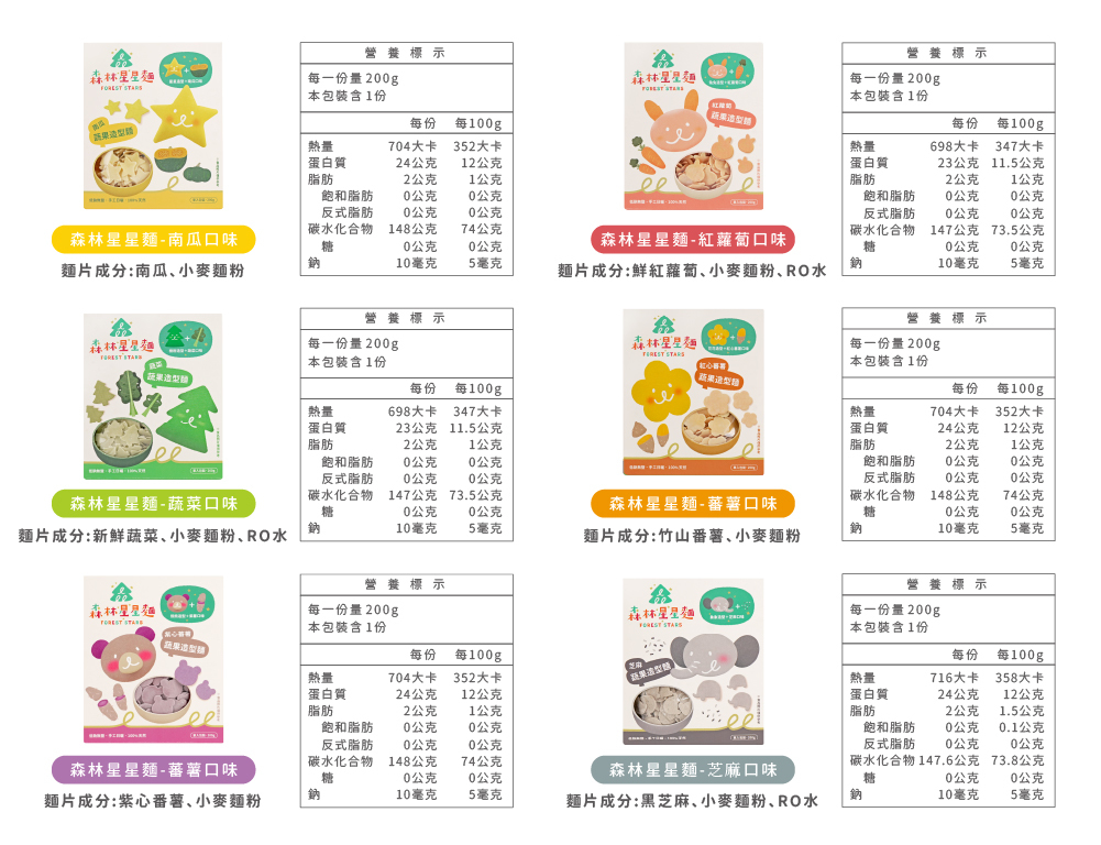 寶寶每日所需的鈉含量必須低於200毫克,而星星麵的鈉含量來自食材本身約只有2毫克且完全無鹽呦!