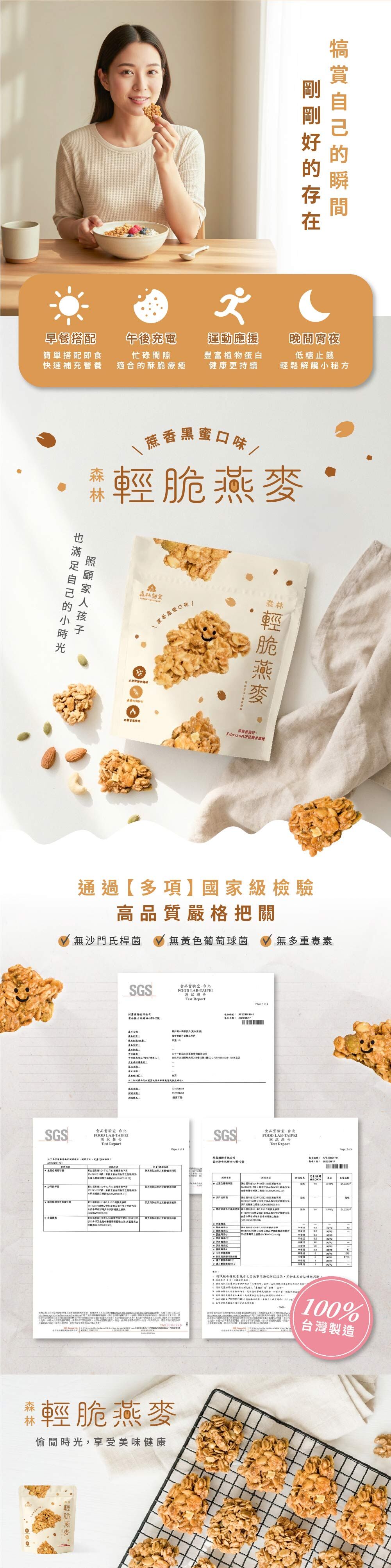 本產品使用黑糖調味,甜度溫和、不死甜,主要帶出燕麥與穀物的自然香氣,