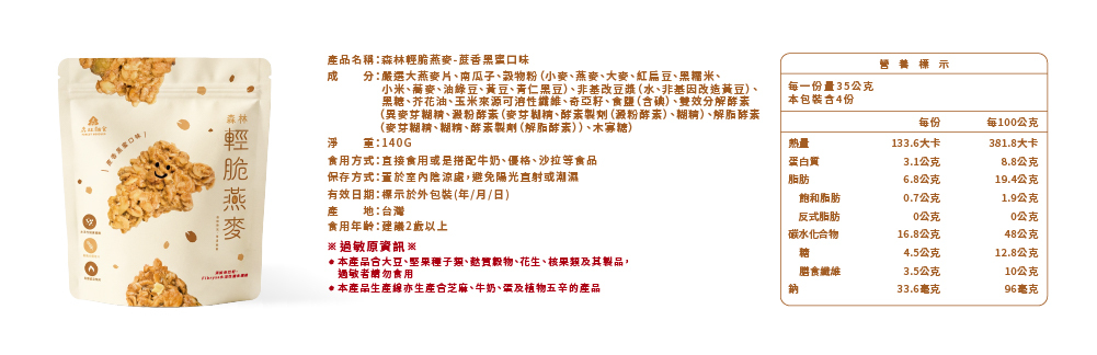 🔸本產品含穀物麩質、大豆、堅果種子類、麩質穀物、花生、核果類及其製品