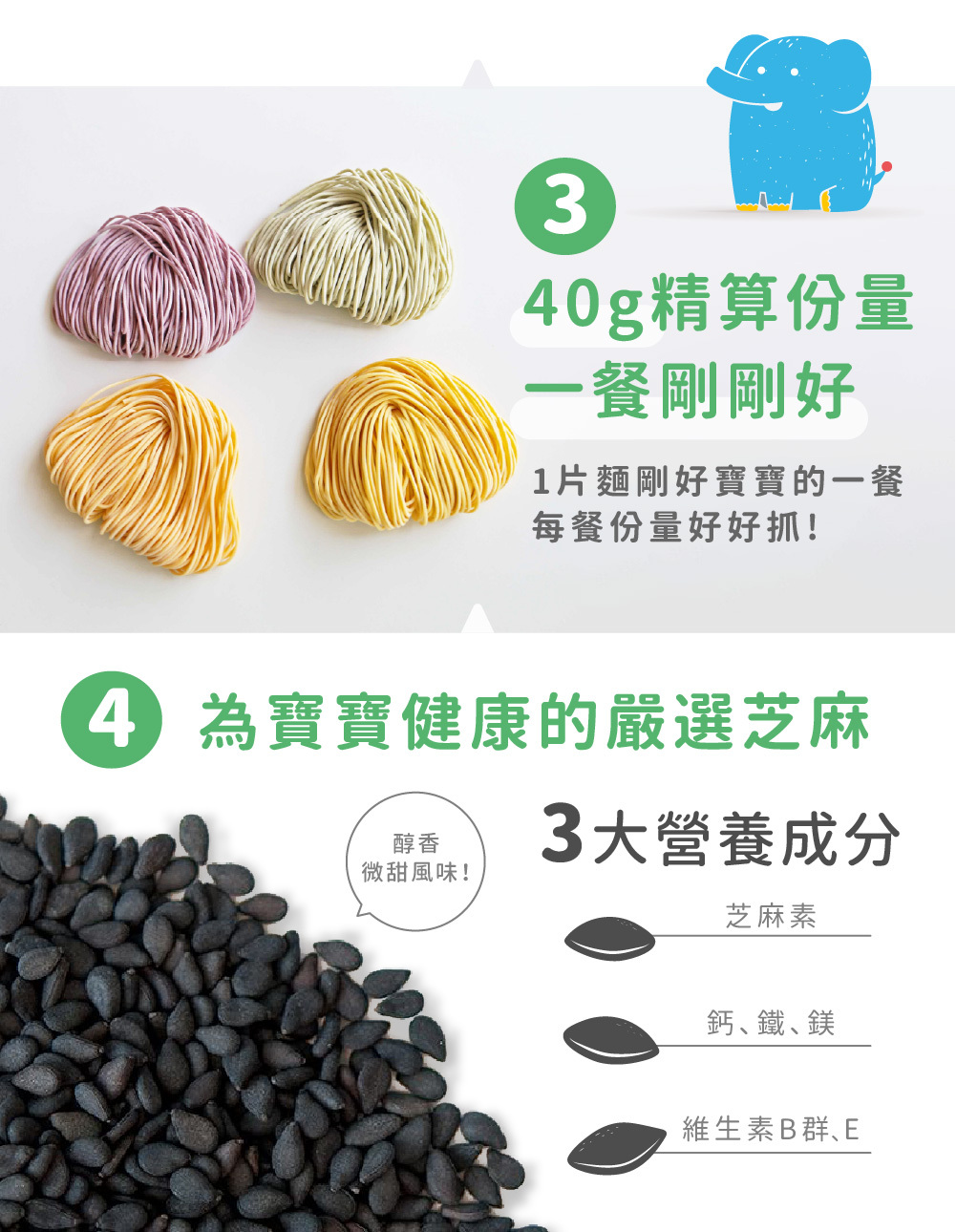寶寶每日所需的鈉含量必須低於200毫克,而寶寶麵的鈉含量來自食材本身約只有2毫克且完全無鹽呦!
