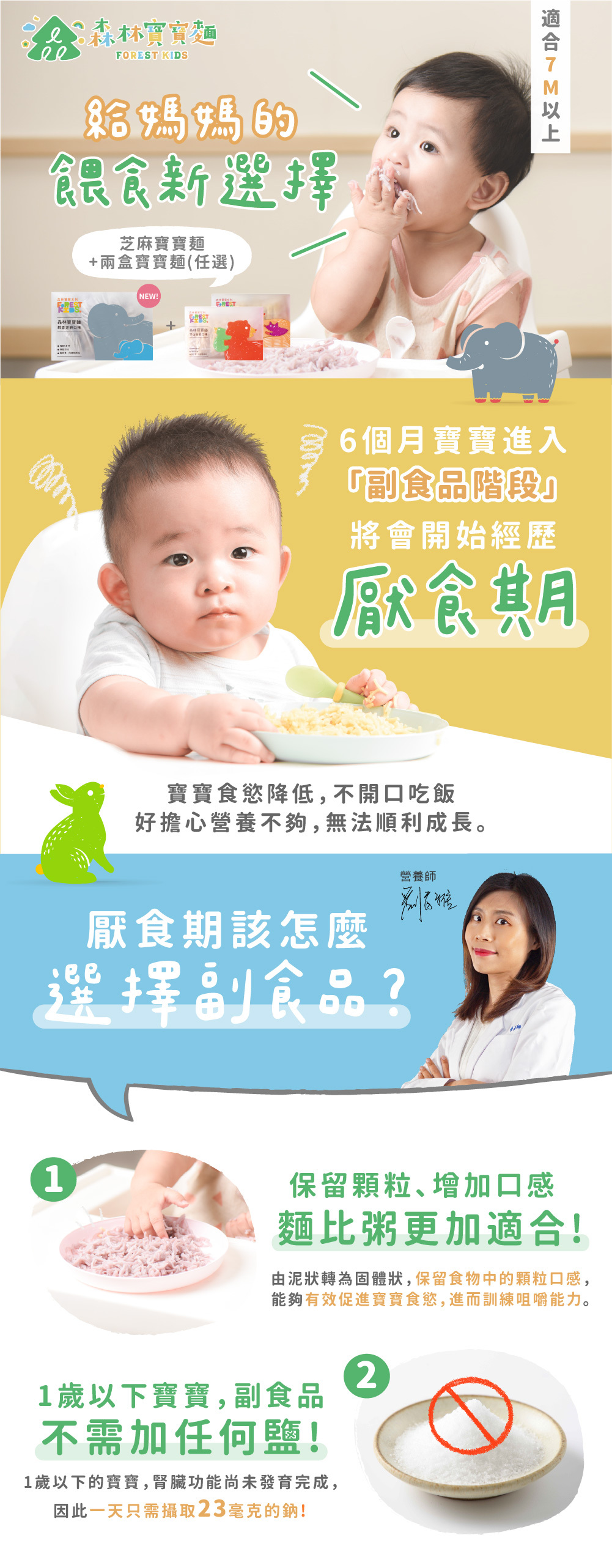 想要嘗試新的口感及味道,森林寶寶麵給媽媽們全新的餵食選擇,