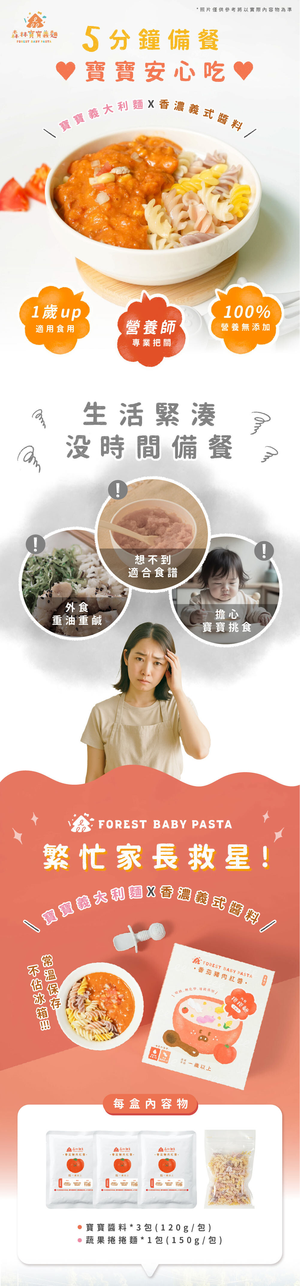 ✔內含3包醬 (120g)+1包捲捲麵 (150g) |約孩子3餐份量