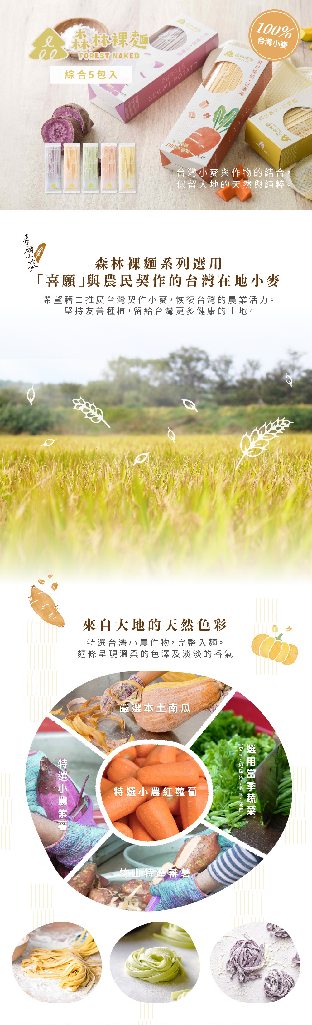 採用來自「喜願小麥」台灣小麥,與喜愛麵食的你們分享100%的台灣製造