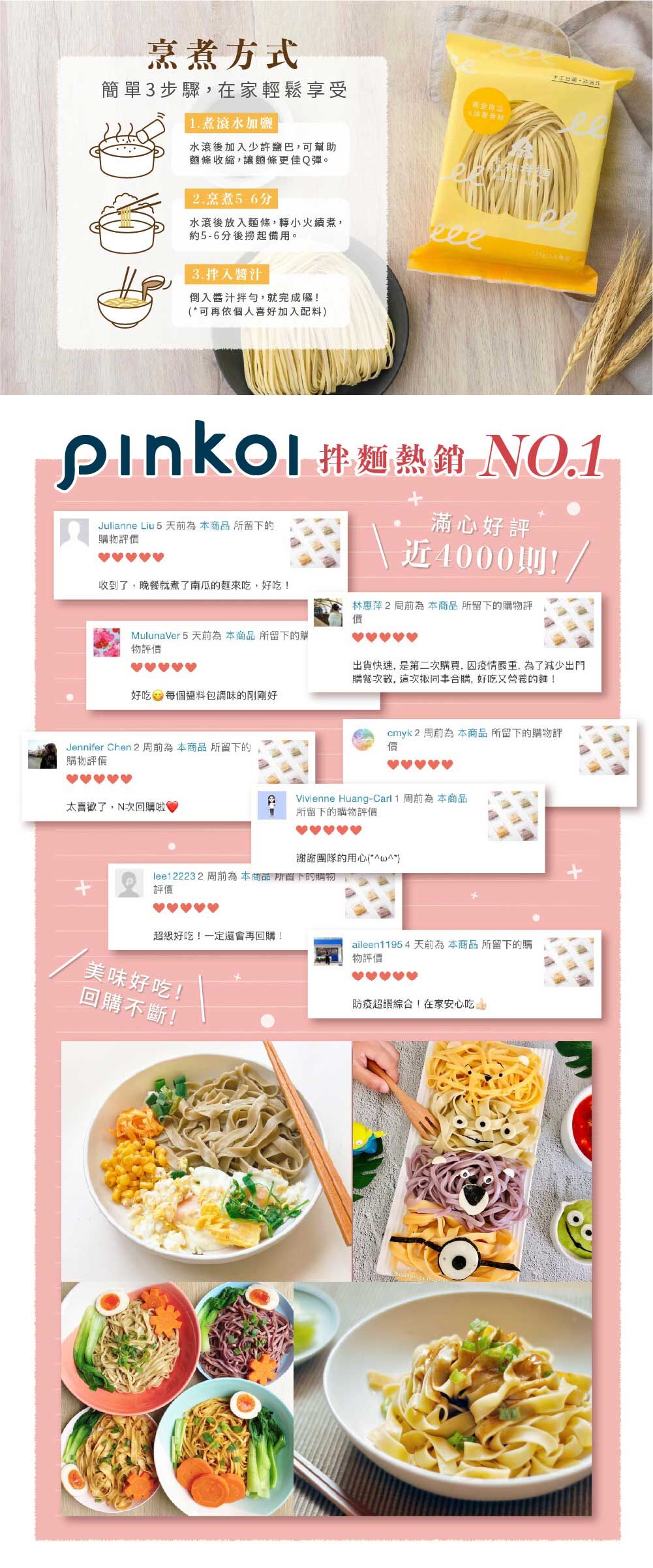 依照不同的麵條粗細,搭配不同的台灣道地醬汁