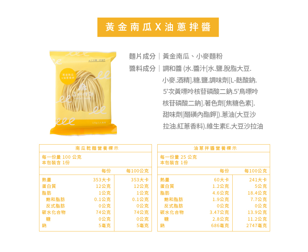 ● 黃金南瓜(細麵)x油蔥拌醬(五辛素)-125g/包