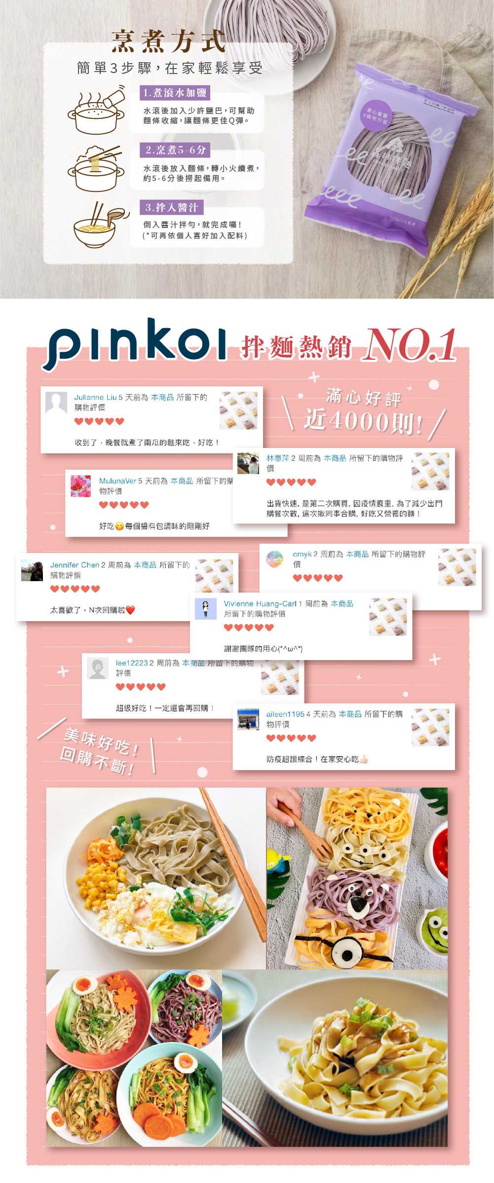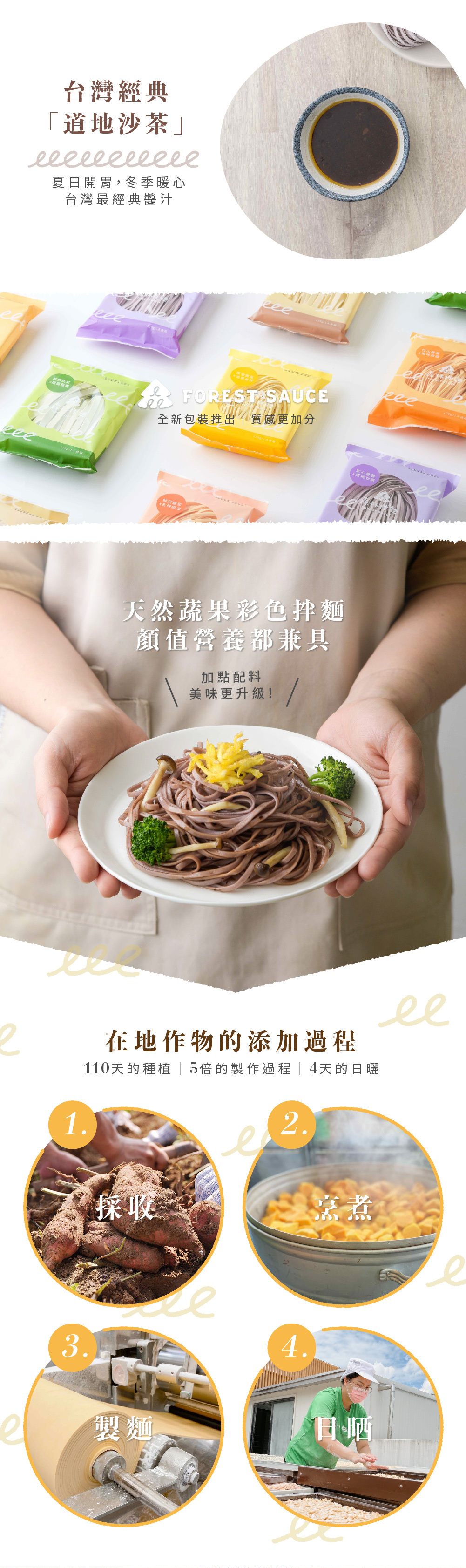 依照不同的麵條粗細,搭配不同的台灣道地醬汁