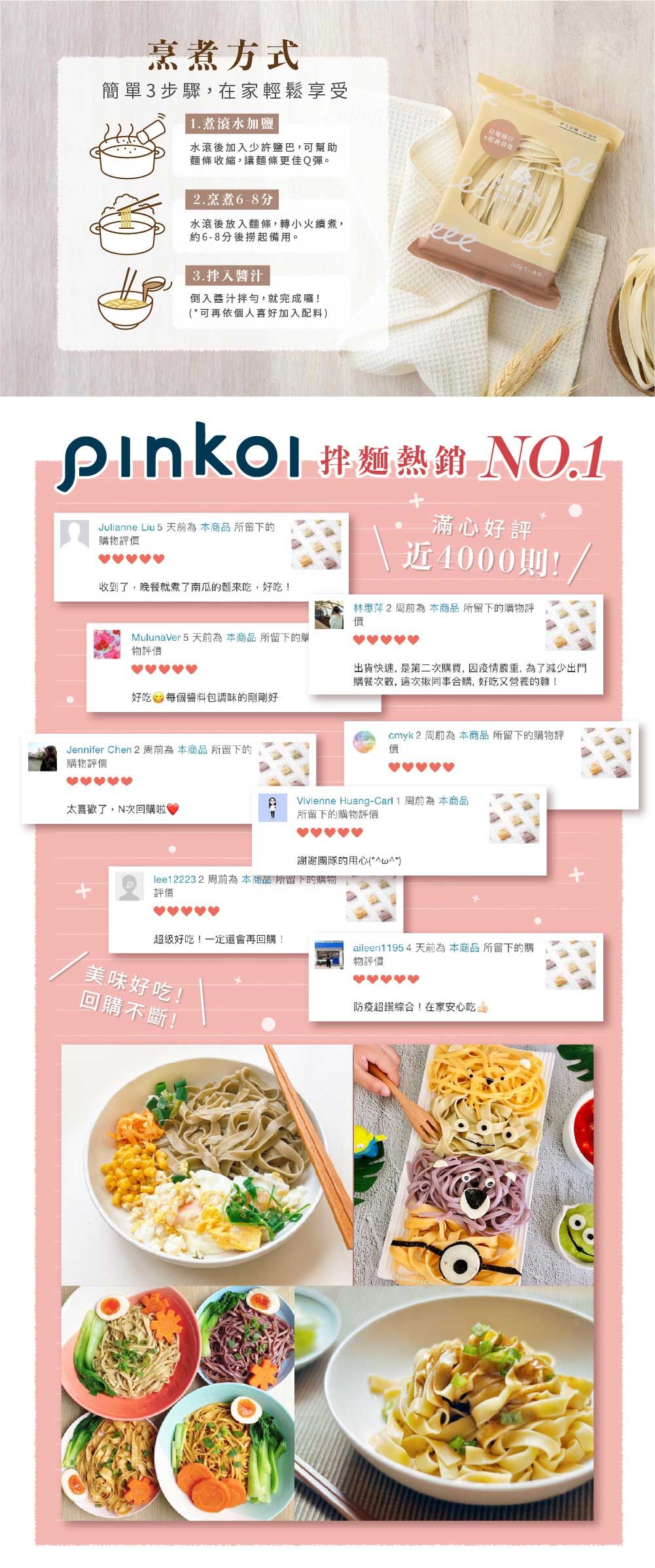 依照不同的麵條粗細,搭配不同的台灣道地醬汁