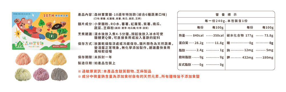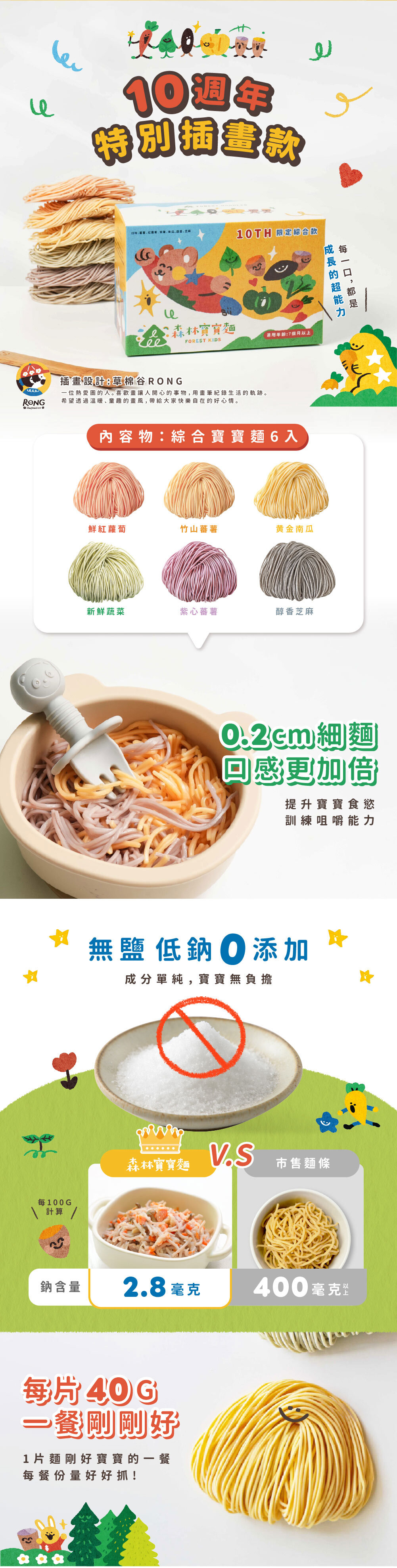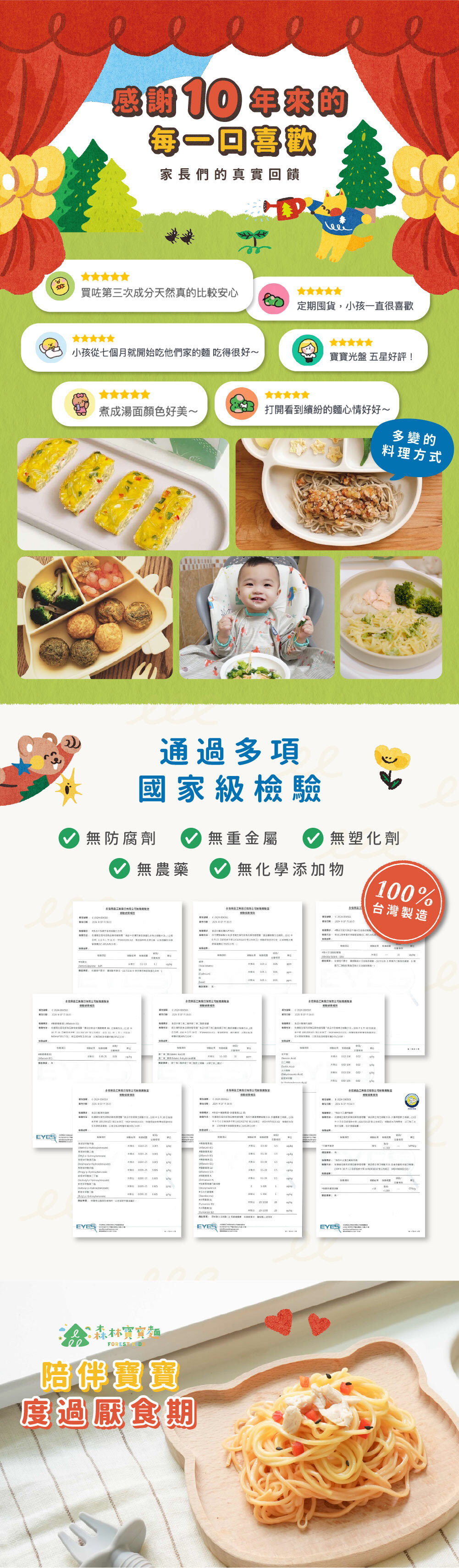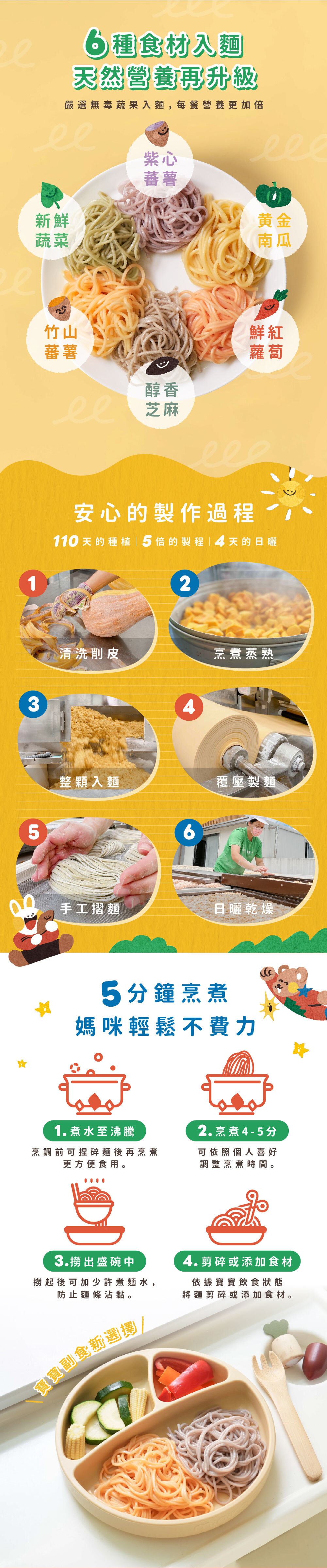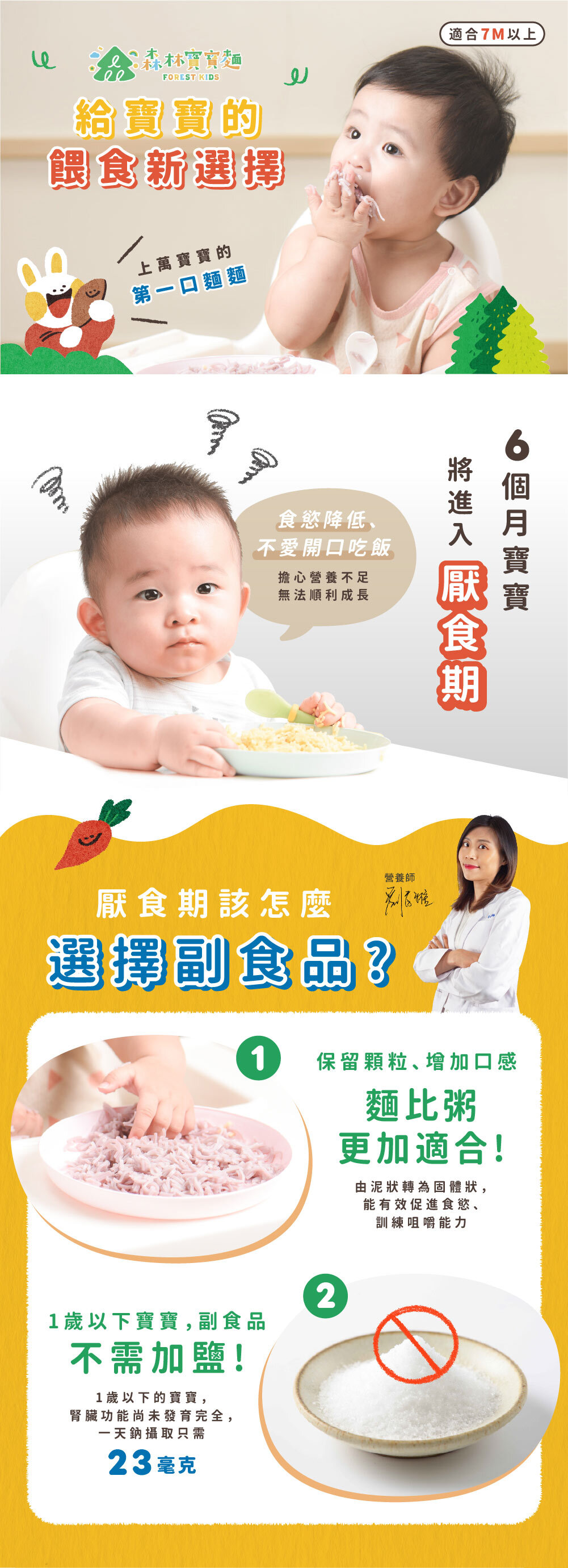 寶寶每日所需的鈉含量必須低於200毫克,而寶寶麵的鈉含量來自食材本身約只有2毫克且完全無鹽呦!