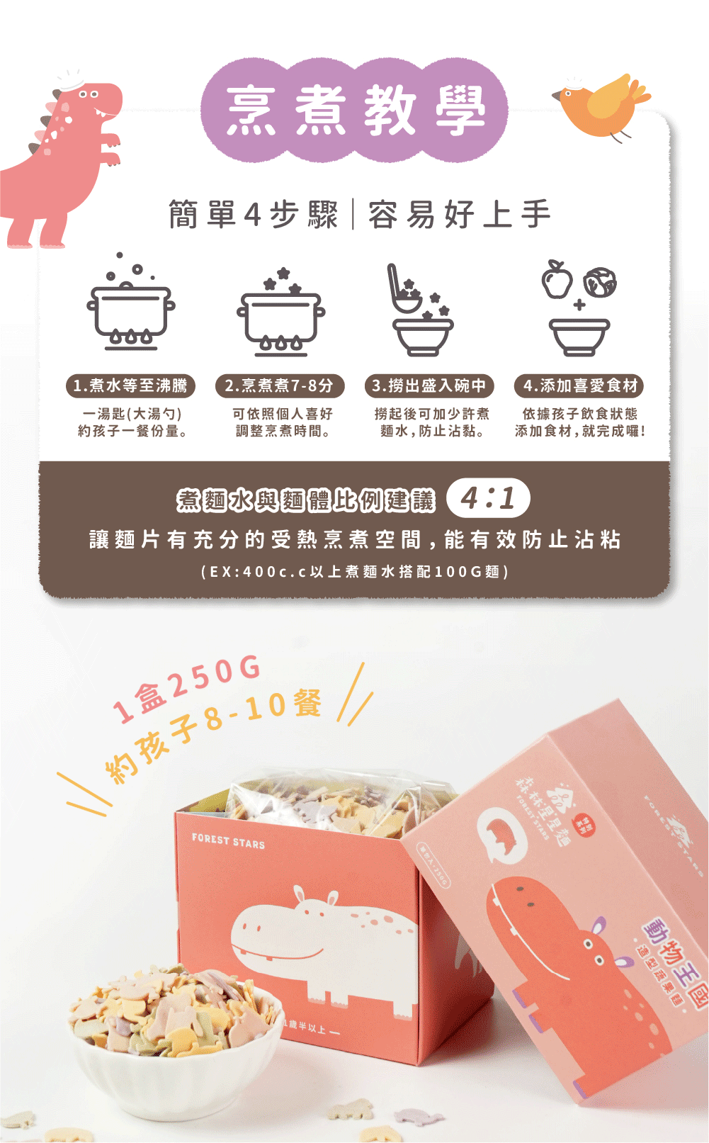寶寶每日所需的鈉含量必須低於200毫克,而星星麵的鈉含量來自食材本身約只有2毫克且完全無鹽呦!