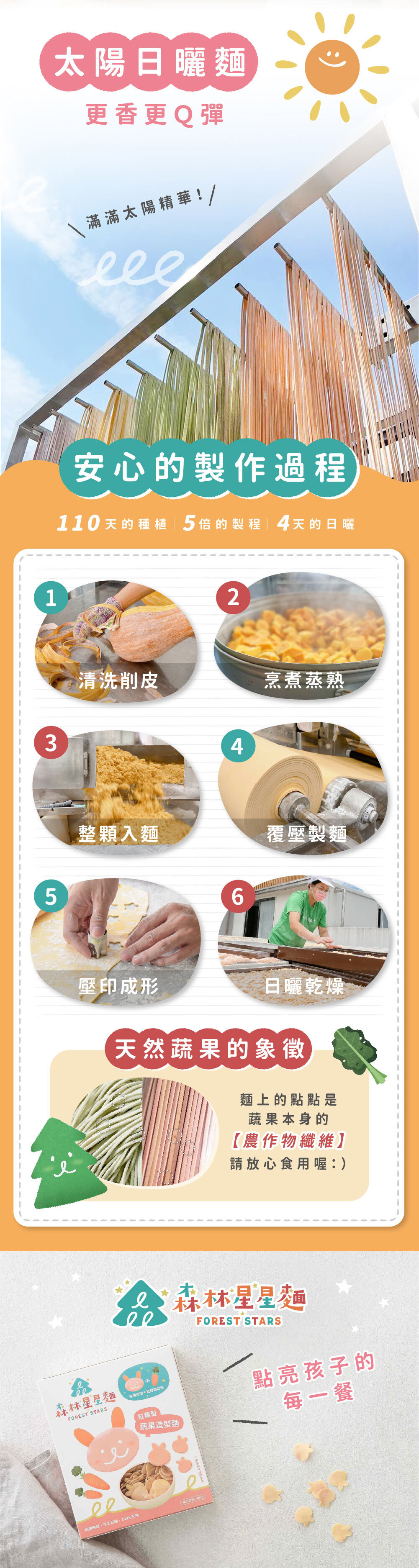 特別推出每款各11種造型的特別星星麵系列,麵片為1.5cm,比常態款的星星麵(2.3cm)更小巧一些,特別款也選用了四種蔬果(綜合款),讓營養樂趣一次滿足!