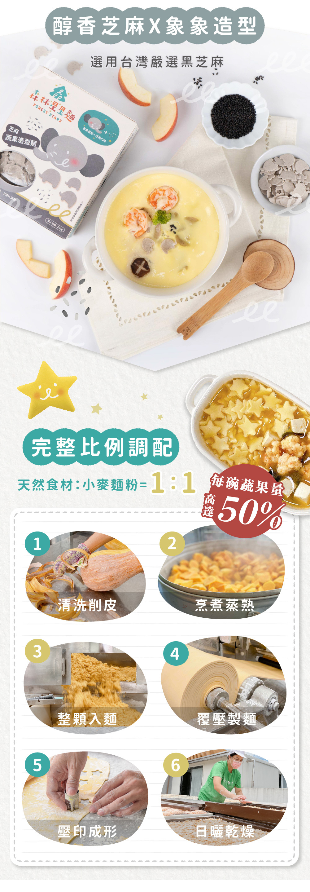 寶寶每日所需的鈉含量必須低於200毫克,而星星麵的鈉含量來自食材本身約只有2毫克且完全無鹽呦!