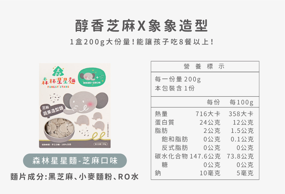 ● 醇香芝麻x象象造型:嚴選萃取黑芝麻
