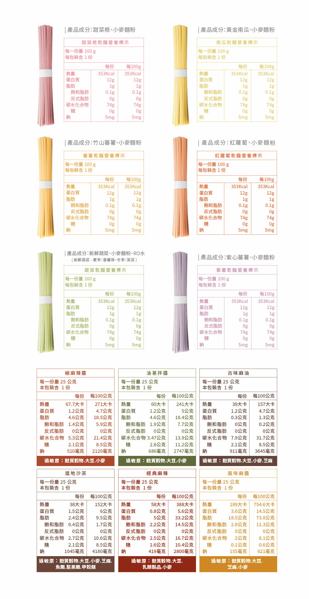 ● 道地沙茶 ● 經典麻辣 ● 油蔥拌醬● 風味麻醬 ● 椒麻麻辣 ● 古味麻油