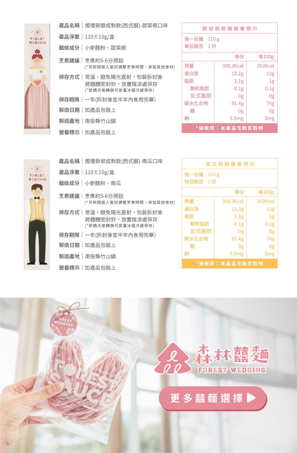 ✔️森林囍麵採用當地農作物去添加製作,製成麵條後日曬至乾再進行包裝(本產品無添加防腐劑,若拆封後,將它密封完整放置乾燥陰涼處,可放置1年左右)