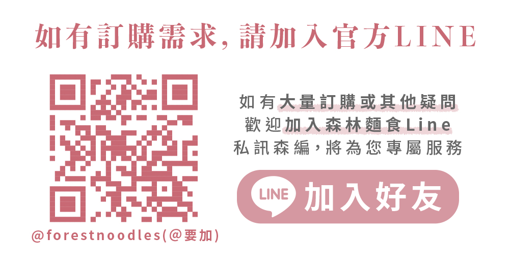 歡迎加入客服LINE:@forestnoodles(@要加) / 森林麵食IG:搜尋forestnoodles